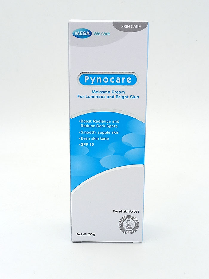 Pynocare Melasma Cream offers a complete melasma solution. It features multiple skin lightening / brightening agents including kojic acid, N-butyl resorcinol, niacinamide, tetrahydrocurcumin, and “Vitamin F.” These help correct existing dark spots and promote a radiant, more even skin tone. The formula also includes antioxidants (vitamin E, resveratrol, Glycyrrhiza glabra extract) to protect against free radicals and photo-aging, and moisturizing / soothing agents like sodium hyaluronate, allantoin, D-panthenol, shea butter, and aloe vera to nurture the skin and improve texture. It carries SPF 15 to provide mild protection from UV rays. Continuous use (morning and night) is recommended.